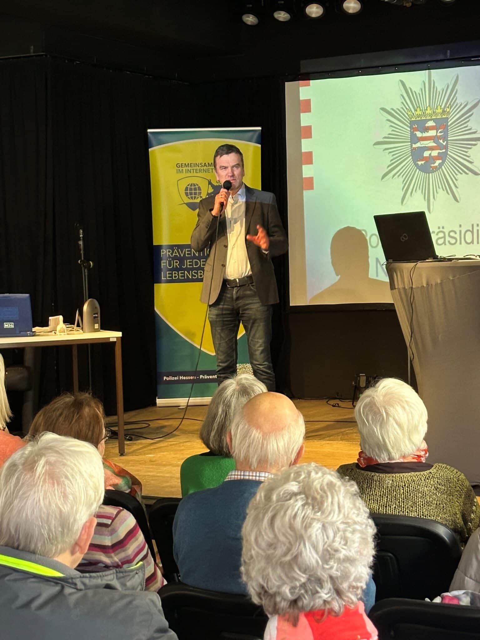 Unter dem Motto „Sicher im Alter – Gefahren im Internet sicher begegnen“ fand am 20.02.2026 die bereits dritte Veranstaltung dieser Art für Wolfhager Seniorinnen und Senioren statt. Das Thema schien großes Interesse zu wecken, es fanden sich rd. 70 Bürgerinnen und Bürger im schönen Ambiente des Wolfhager Kulturladens ein, die von Bürgermeister Dr. Dirk Scharrer und dem Seniorensicherheitsbeauftragten Hartmut Vogt begrüßt wurden.