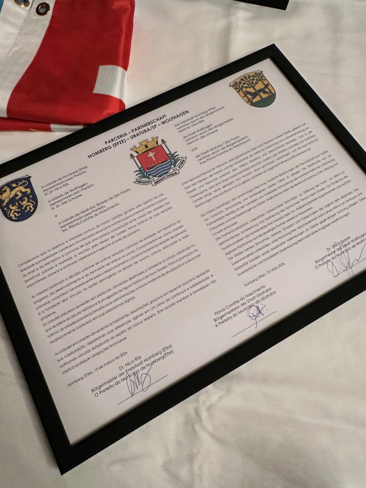 Eine historische Verbindung, die vor fast fünf Jahrhunderten begann, wurde nun offiziell besiegelt: Die Städte Wolfhagen und Homberg (Efze) haben eine Städtepartnerschaft mit der brasilianischen Stadt Ubatuba geschlossen. Der Besuch der brasilianischen Delegation in Nordhessen umfasste ein fünftägiges Programm, darunter einen Empfang in Wolfhagen sowie die feierliche Unterzeichnung der Städtepartnerschaftsurkunde am 13.03.26 in Homberg (Efze).
