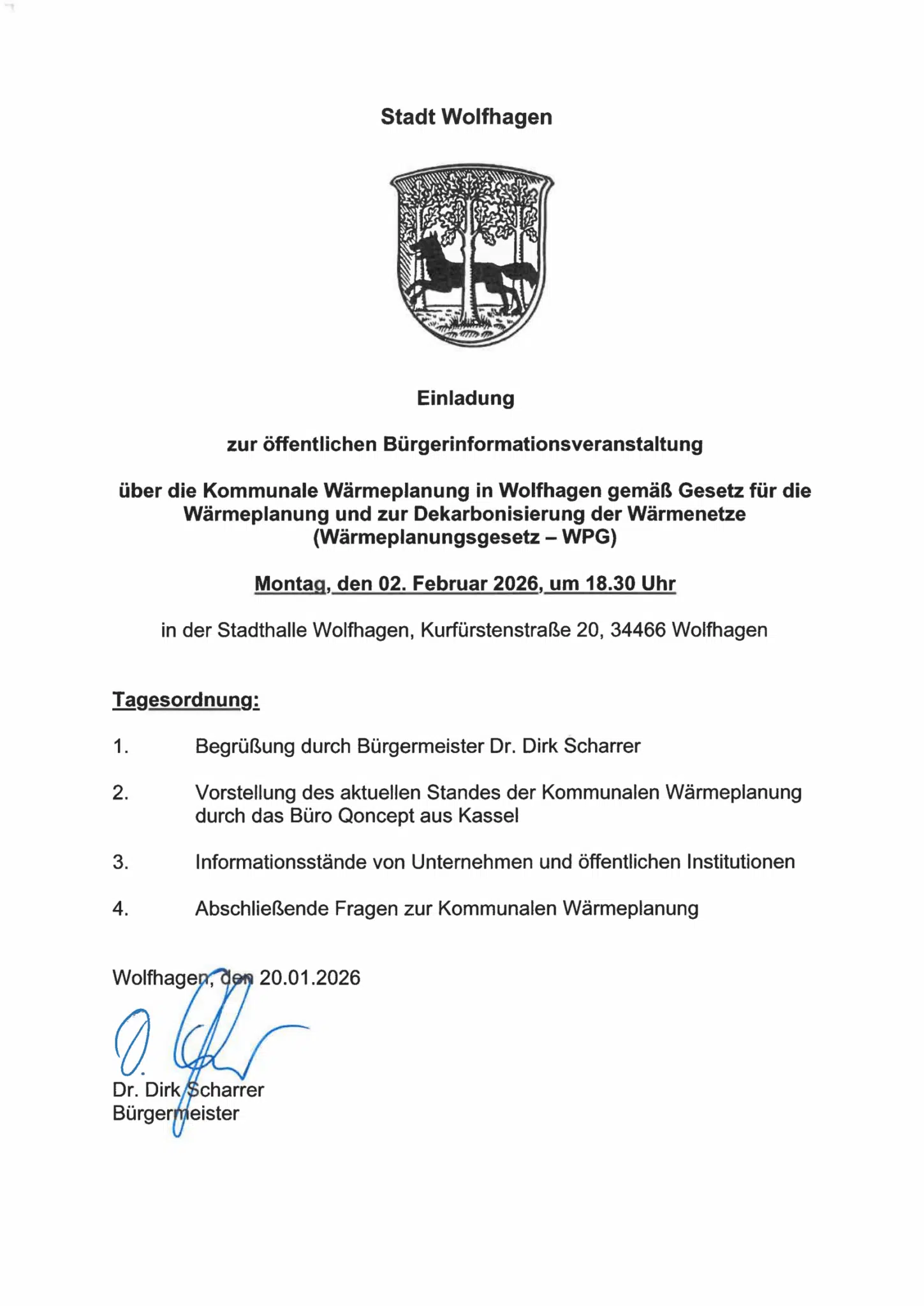 Sie sind hier: Home » Einladung zur öffentlichen Bürgerinfoveranstaltung über die kommunale Wärmeplanung in Wolfhagen