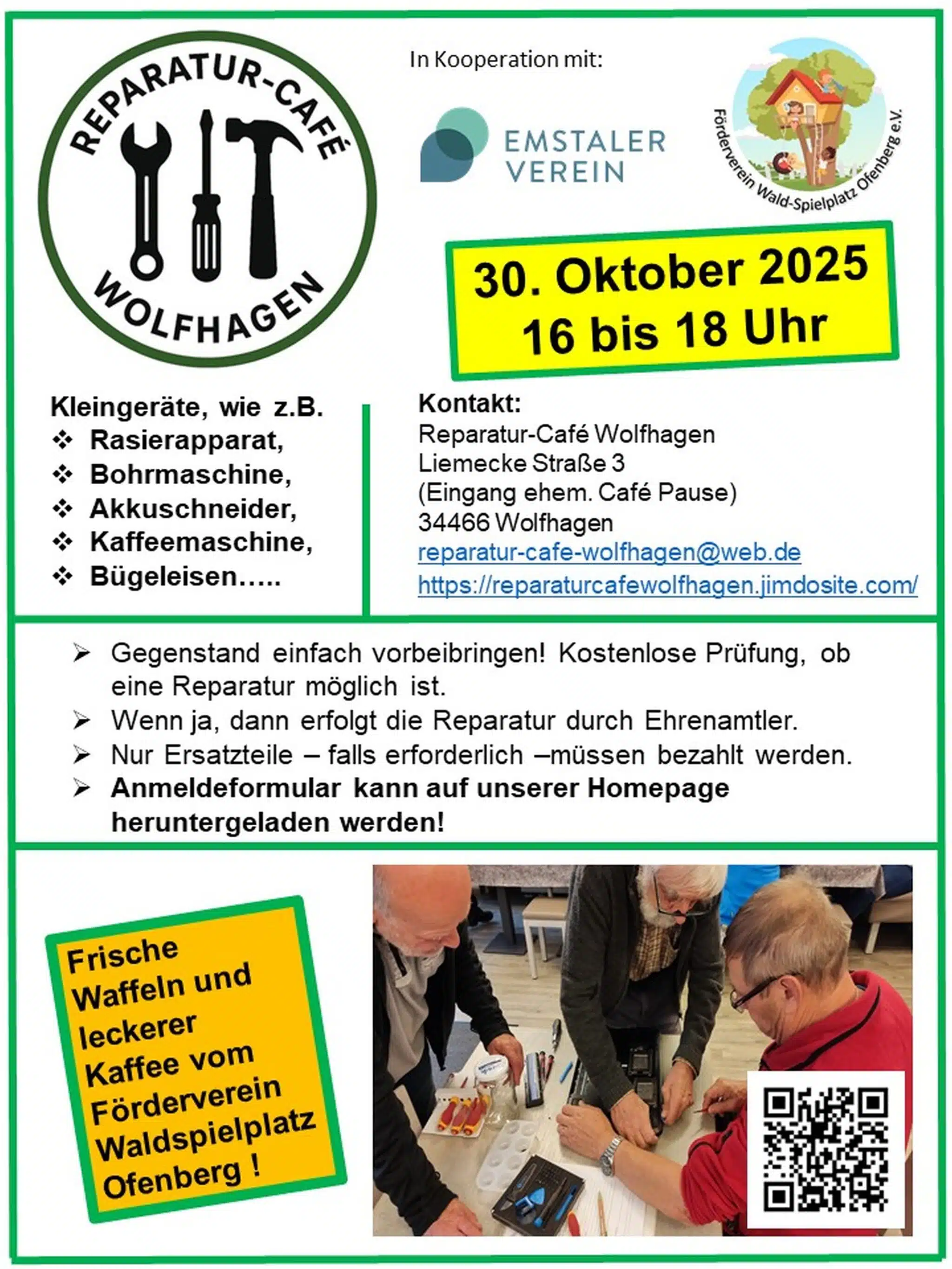Am Donnerstag, 30. Oktober 2025 eröffnet in Wolfhagen ein Reparatur-Café. In Zusammenarbeit mit dem Emstaler Verein findet in den Räumen des früheren Café Pause die erste Aktion statt.