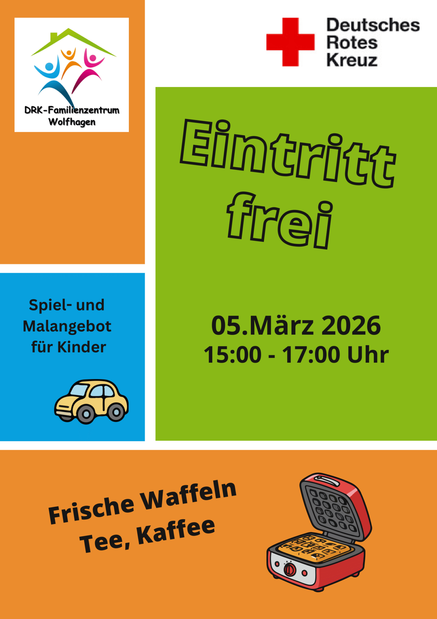 Das Familienzentrum wird Kaffee, Tee und frische Waffeln zubereiten, ein kleines Spiel- und Malangebot wird auch aufgebaut sein.